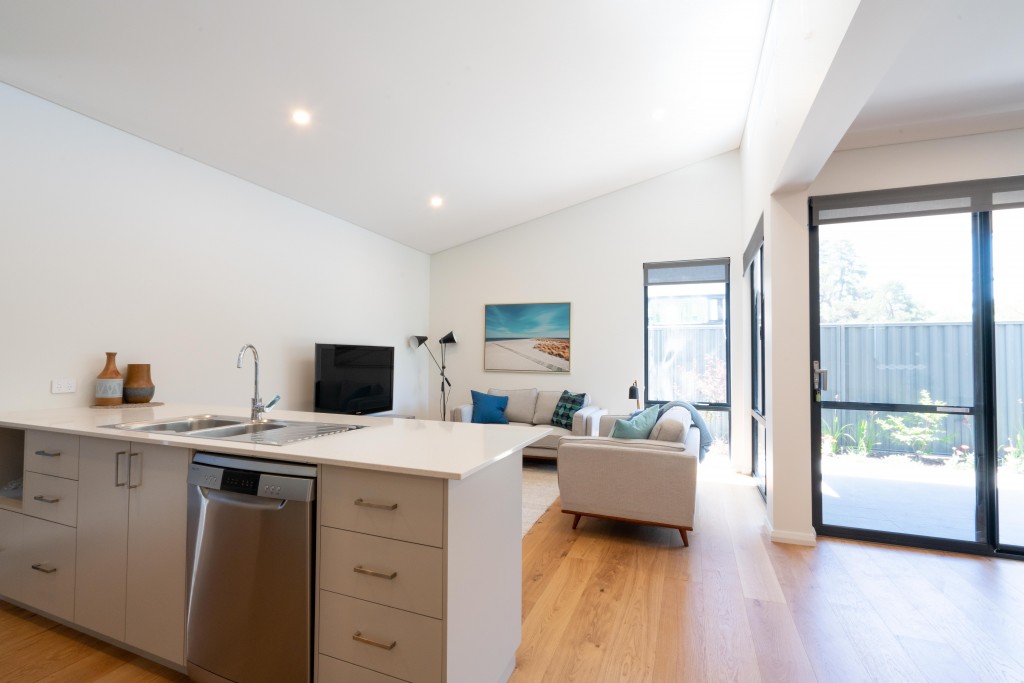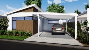 A more compact version of our popular Contos Home. The Blackwood has a contemporary elevation and an open plan living area that wraps around a well placed alfresco bringing the outdoors inside. The Blackwood has two bedrooms, one bathroom and a powder room.
